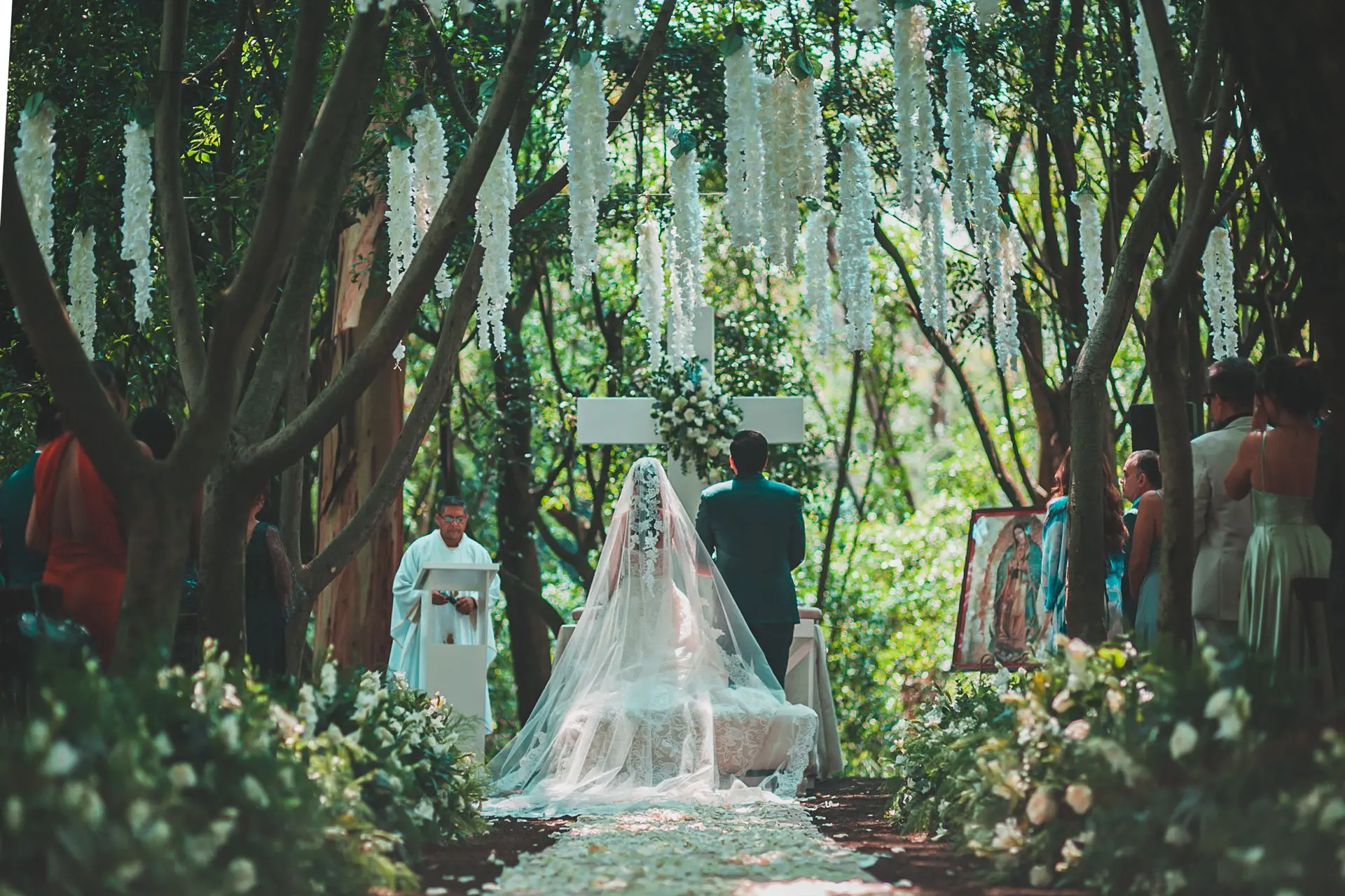 En el Altar de Ceremonia: Para enmarcar el momento más emotivo y sagrado, el "Sí, acepto".