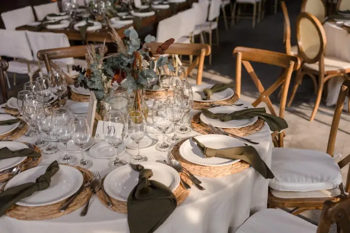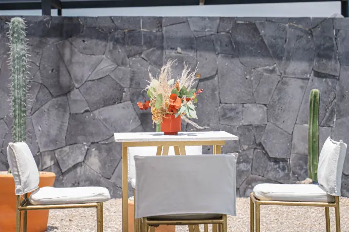 La hora del coctel es la primera impresión de su celebración, el momento en que sus invitados se relajan, socializan y se contagian de la alegría del día. Nuestros detalles para las mesas periqueras y de apoyo están pensados para dar la bienvenida con pequeños toqus de belleza, creando una atmósfera de celebración desde el primer instante.
