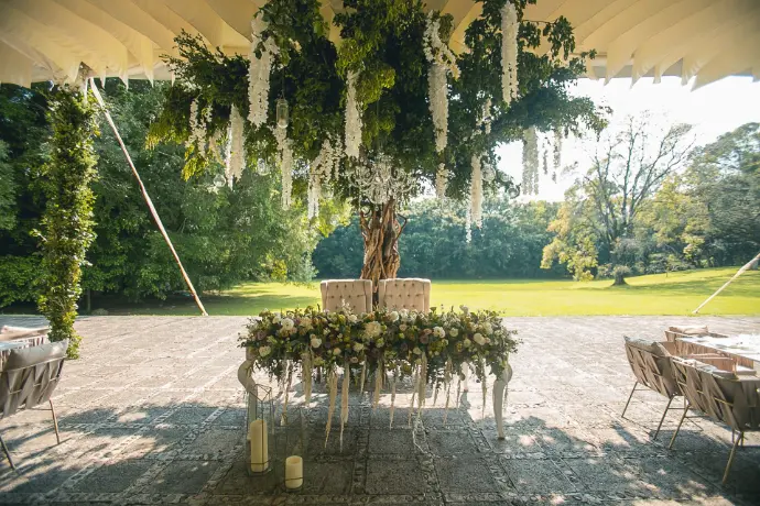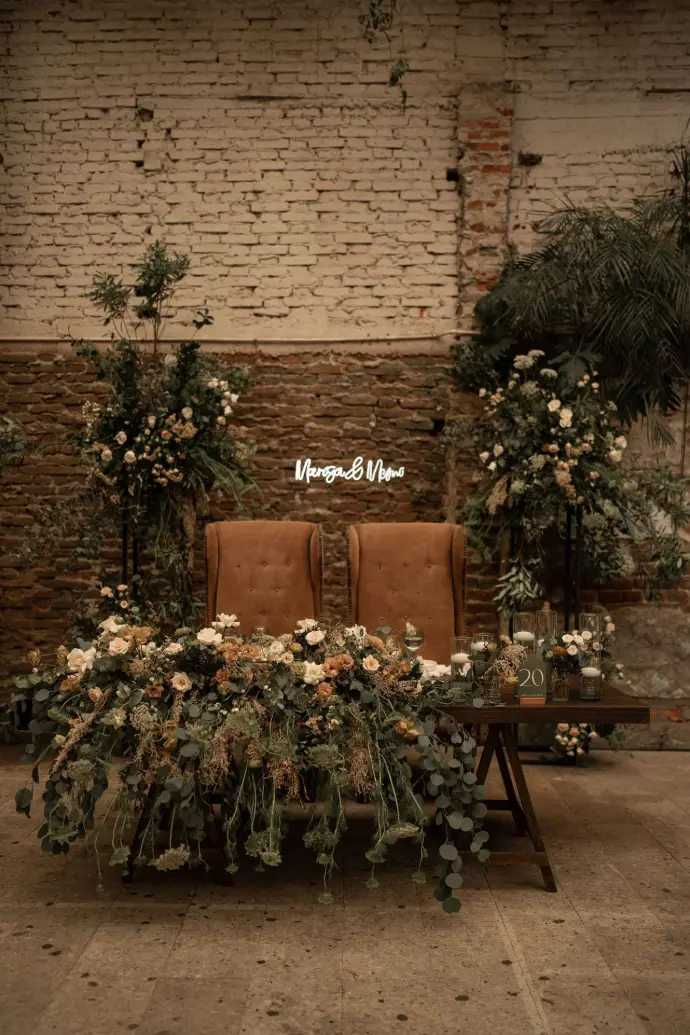 Será el centro de todas las miradas, un espacio íntimo que celebra su unión. Diseñamos su mesa principal para que sea un reflejo perfecto de su estilo, un rincón espectacular lleno de belleza y significado.