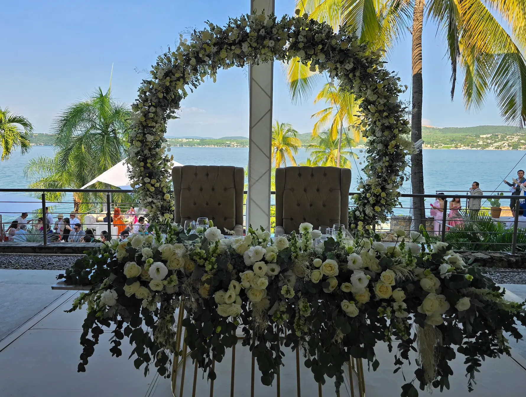Altar: A elegir entre una majestuosa guirnalda o 2 arreglos elevados sobre bases de diseño.