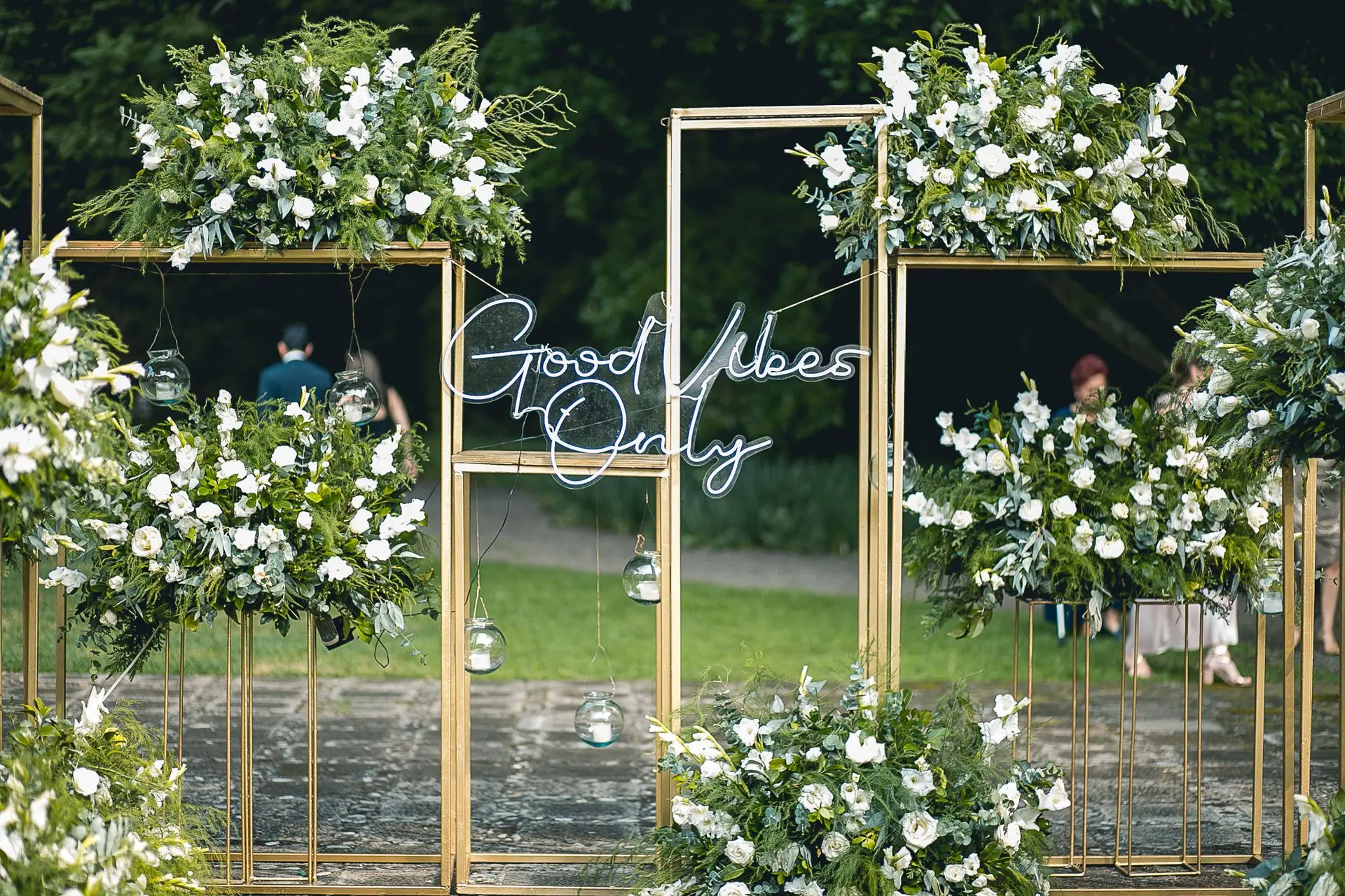 Añade un toque de luz personal con un letrero de neón ("Mr. and Mrs", "Better Together" o sus iniciales) a cualquiera de nuestros arcos para hacerlo aún más suyo.