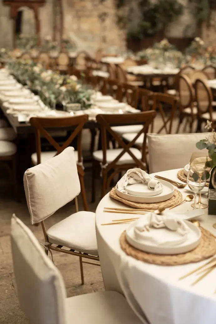 - Coordinación de momentos clave (Cortejo, Primer Baile, Brindis, etc.) y supervisión de banquetes/menús especiales.